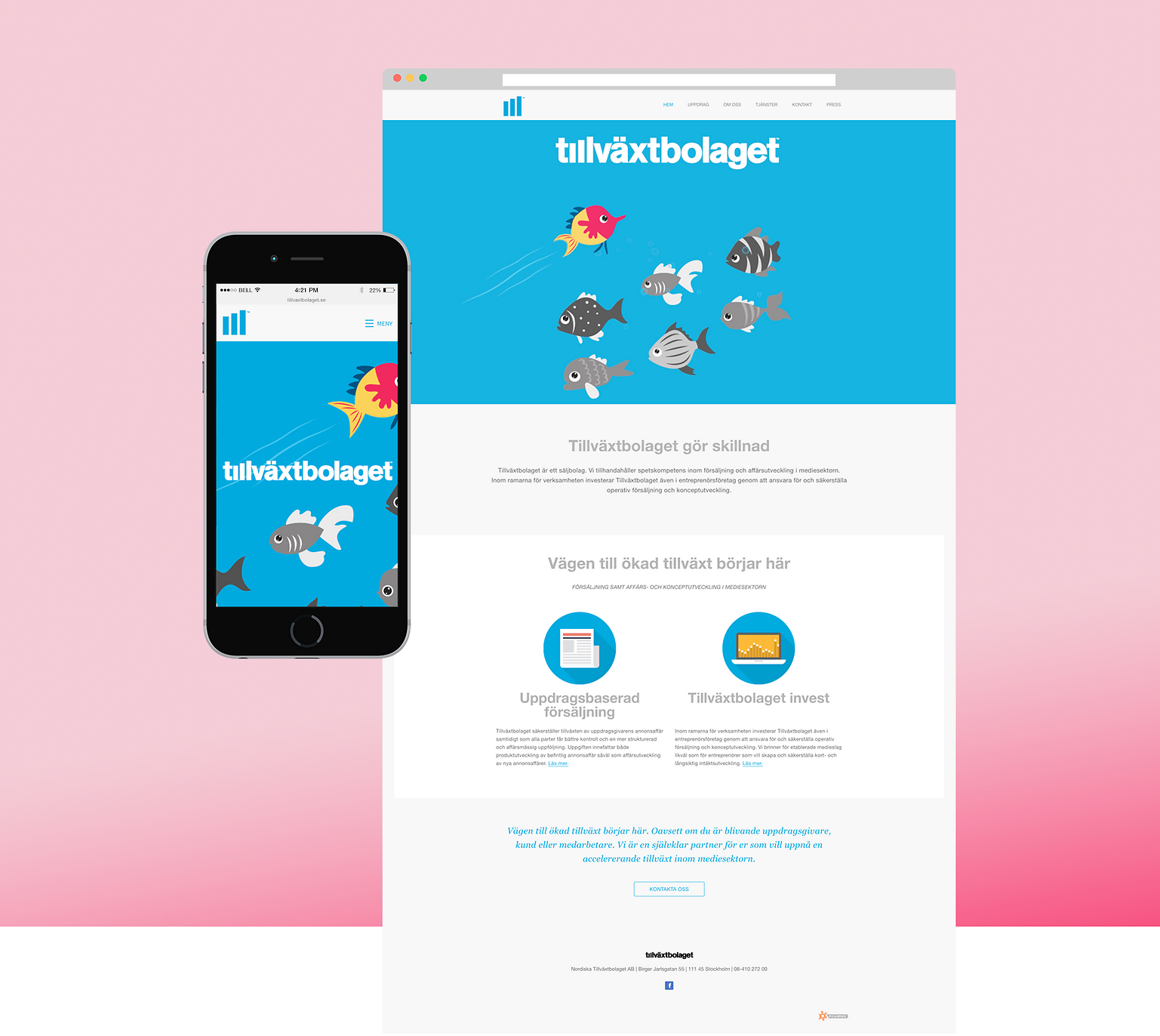 När jag designade hemsidan åt Nordiska Tillväxtbolaget ville jag ge sidan en ren och snygg design som samtidigt gav en B2B-känsla. Med hemsidan vill man kunna visa upp sina uppdrag och samtidigt bjuda in till att ta kontakt.